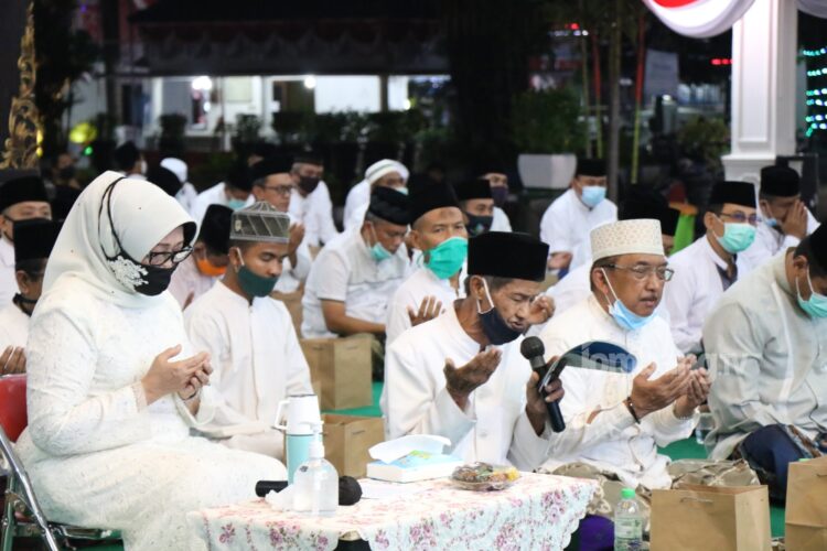 Bupati Jombang Hj Mundjidah Wahab bersama kepalaOPD, tokoh agama dan masyarakat secara terbatas, menggelar Doa Bersama 1 Muharram 1442 H di Pendopo Kabupaten Jombang.