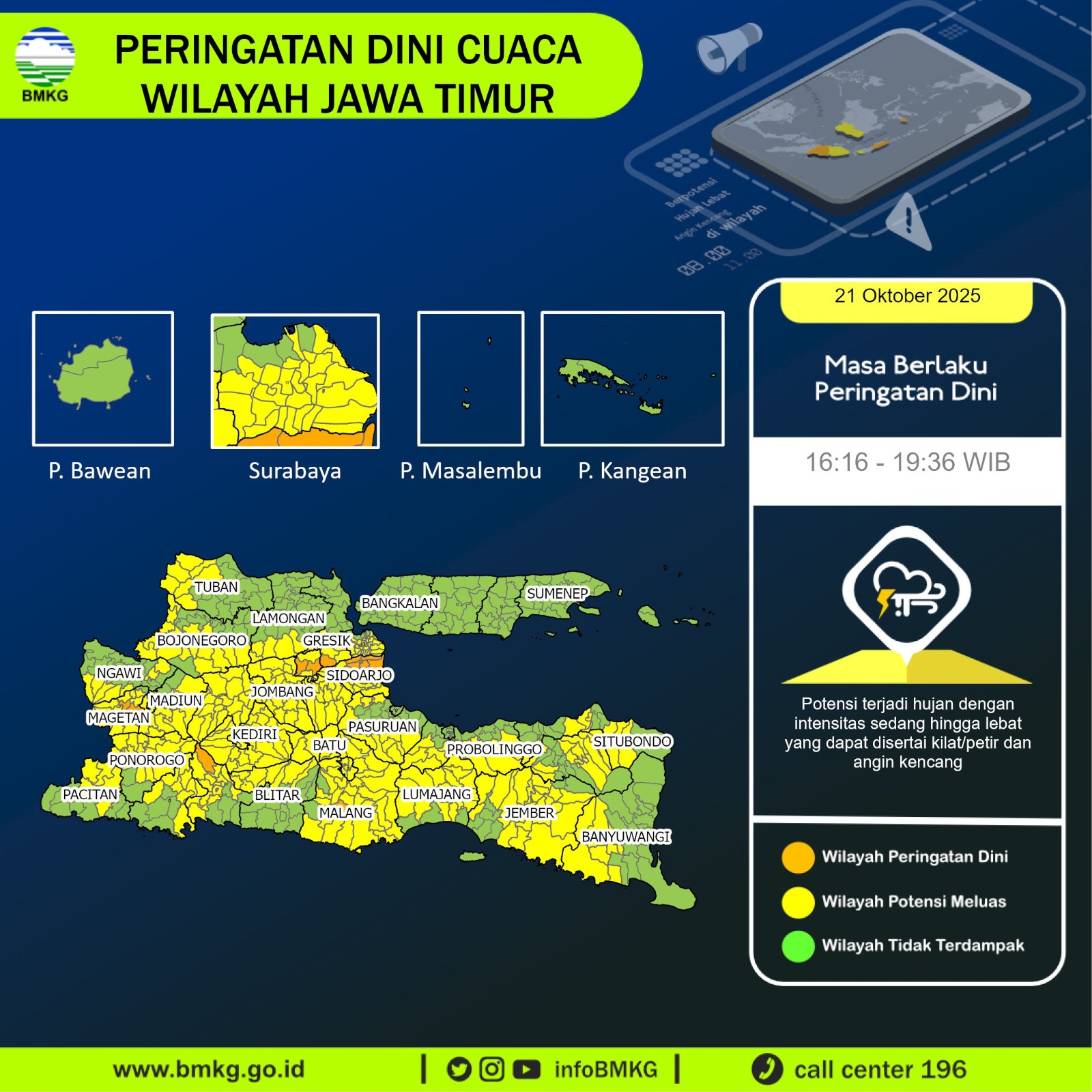 JOMBANG.TV — Badan Meteorologi, Klimatologi, dan Geofisika (BMKG) merilis bahwa secara umum wilayah Provinsi Jawa Timur, termasuk Kabupaten Jombang, saat ini sedang berada pada masa transisi atau pancaroba dari kemarau menuju musim penghujan. Pada periode ini, potensi terjadinya cuaca ekstrem diperkirakan meningkat.