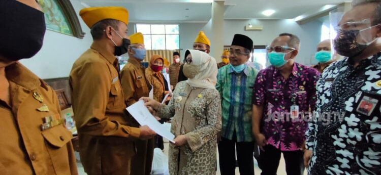JOMBANG.TV – Momentum Peringatan HUT 75 Tahun Kemerdekaan Bangsa Indonesia di Kabupaten Jombang, (18/8) pagi, di Gedung Islamic Center, Pemerintah Kabupaten Jombang Sinergi bersama Baznas Jombang memberikan bantuan social (Bansos) kepada Legiun Veteran Republik Indonesia (LVRI) Kabupaten Jombang.