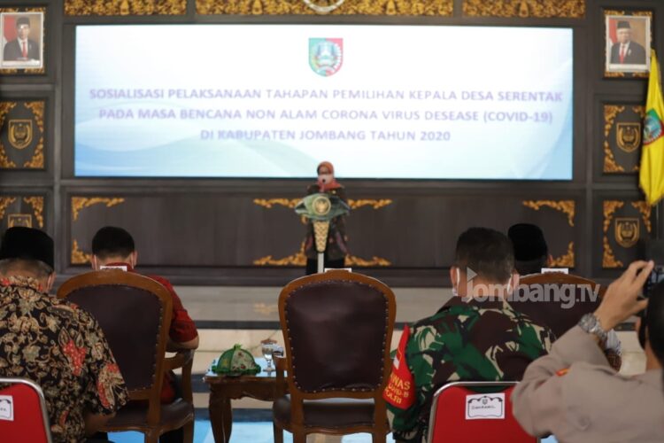 Bupati Jombang Hj. Mundjidah Wahab dalam sambutannya menyebutkan bahwa Perbup nomor 56 tahun 2020 tersebut merupakan dasar hukum untuk penyelenggaraan pilkades serentak tahap 2 yang direncanakan akan diselenggarakan di 9 Desa pada tanggal 16 Desember 2020.