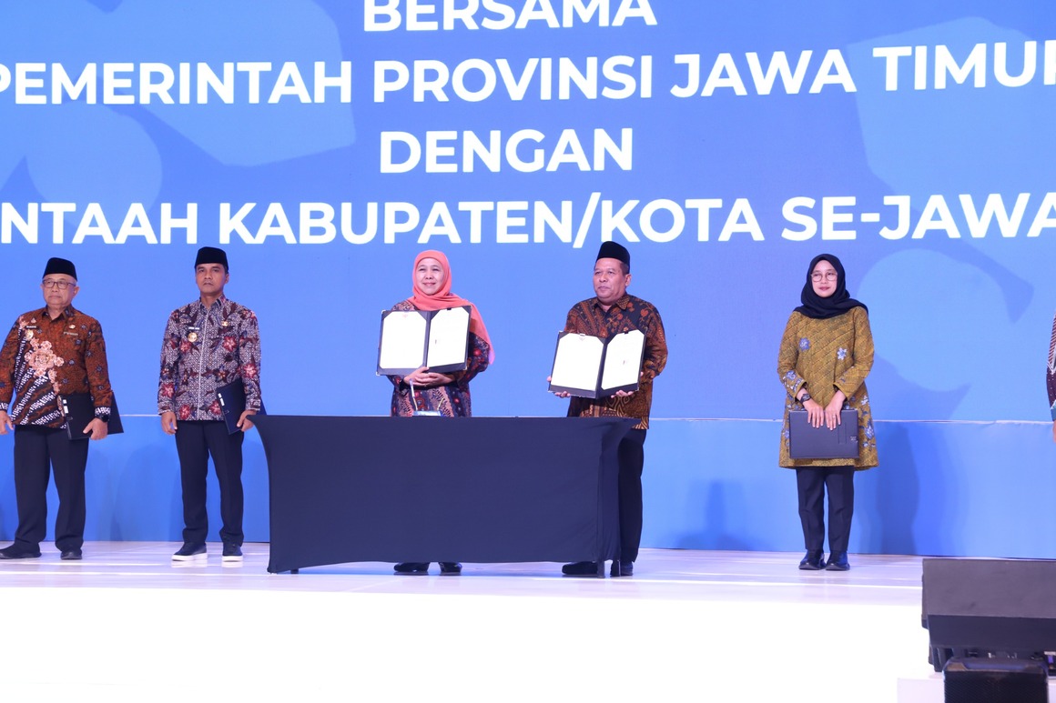 JOMBANG.TV – Bupati Jombang, H Warsubi, bersama Wakil Bupati Salmanudin, menorehkan langkah bersejarah dengan menandatangani Nota Kesepakatan Restorative Justice (RJ) dan Kesepakatan Bersama Pembangunan Daerah yang dipimpin Gubernur Jawa Timur, Khofifah Indar Parawansa, di Dyandra Convention Center Surabaya, Kamis (9/10/2025).