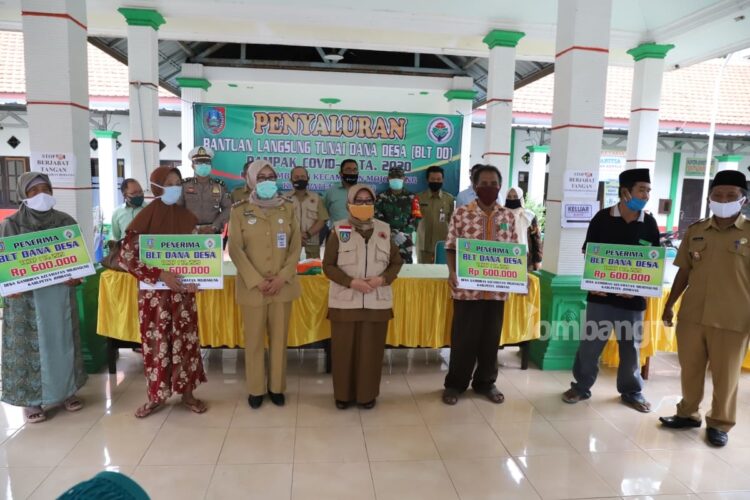 JOMBANG.TV – Bupati Jombang, Hj. Mundjidah Wahab menyalurkan secara simbolis Bantuan langsung tunai Dana Desa (BLTDD) pada masyarakat terdampak Covid-19 di Kabupaten Jombang, Jawa Timur.