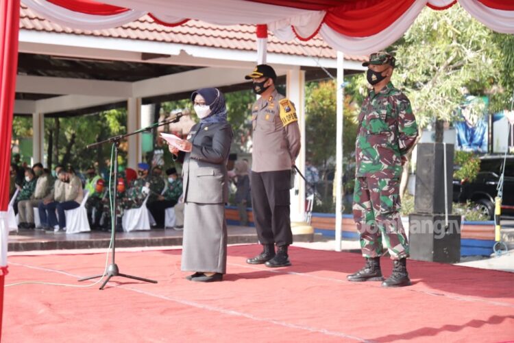 Pagi ini, Kamis (10/9/2020) Bupati Jombang Hj. Mundjidah Wahab, didampingi Kapolres Jombang AKBP Agung Setyo Nugroho SIk dan Letkol Inf Triyono Dandim 0814 yang diwakili Kasdim 0814 memimpin Apel Kampanye Penggunaan Sekaligus Pembagian Masker dalam rangka Penerapan Adaptasi Kebiasaan Baru Untuk Mendukung Percepatan Penanganan Covid 19 Dan Pemulihan Ekonomi Nasional di Alon Alon Kabupaten Jombang.