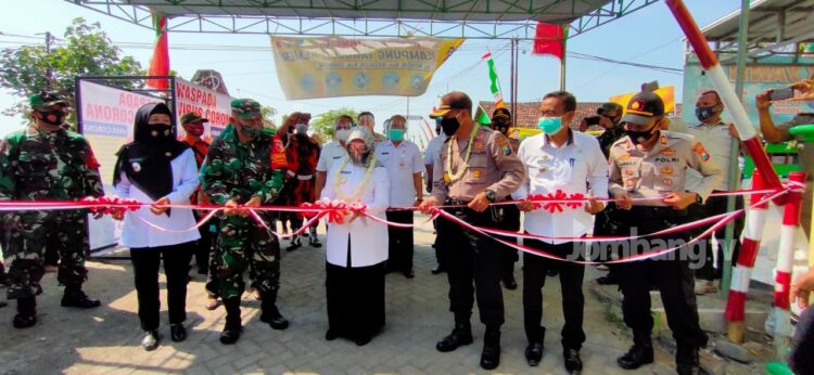 Selain itu, rombongan dan Bupati juga melakukan cek suhu badan. Bupati Jombang menyampaikan bahwa keberadaan kampung tangguh adalah untuk memutus mata rantai penyebaran Covid-19.