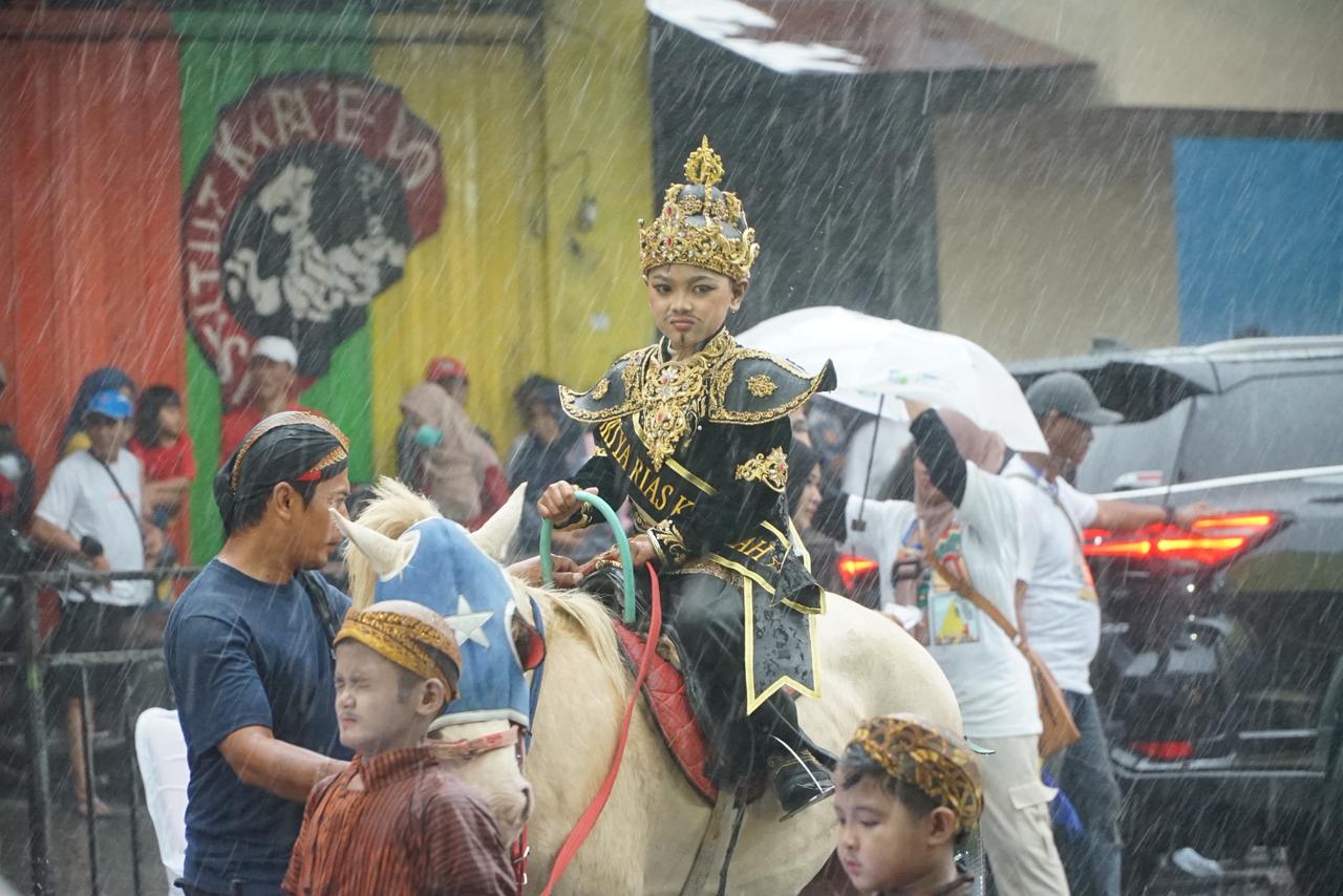 Para penonton bersorak kagum. Meski hujan turun semakin deras, tak satu pun peserta meninggalkan barisan. Mereka tetap menampilkan yang terbaik dengan senyum, dengan semangat, dengan dedikasi yang tulus.