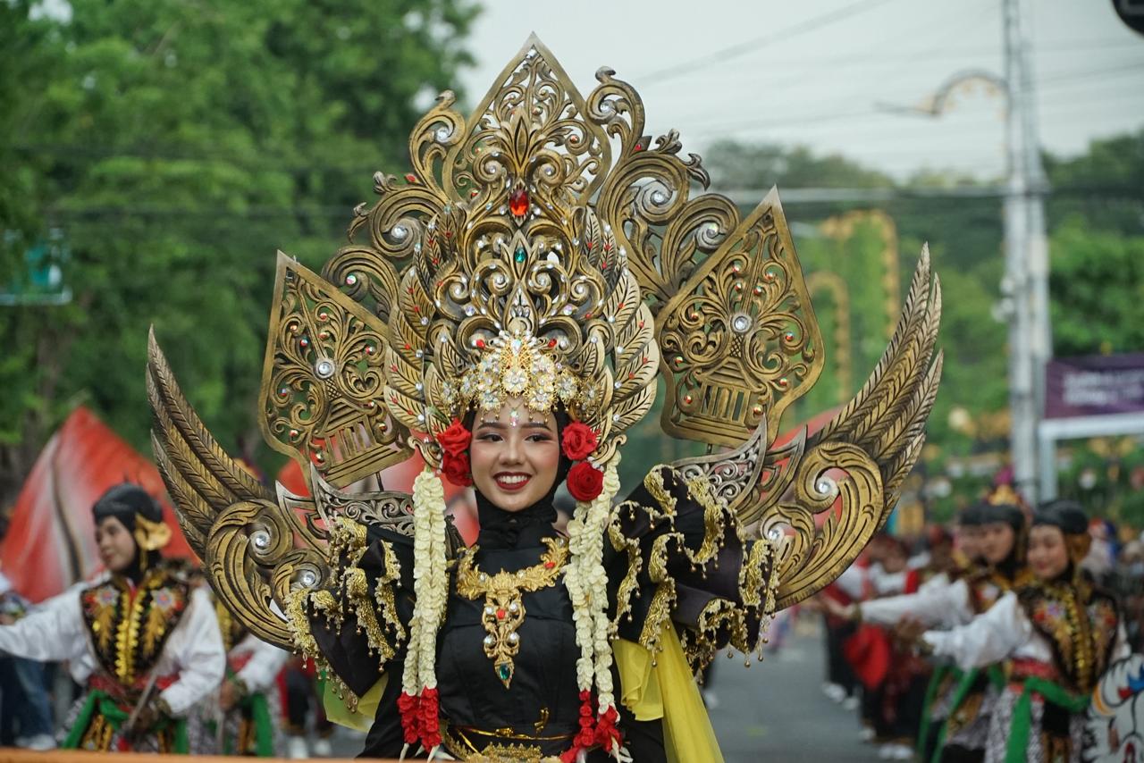 Warna-warni kostum, dentuman drum, serta lenggak-lenggok pasukan muda marching band dari berbagai daerah di Jawa Timur berpadu menciptakan harmoni antara seni, budaya, dan sportivitas.