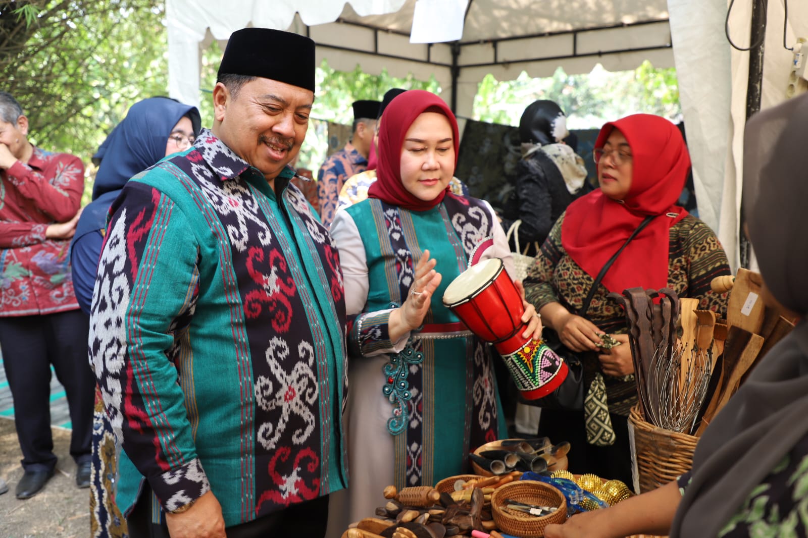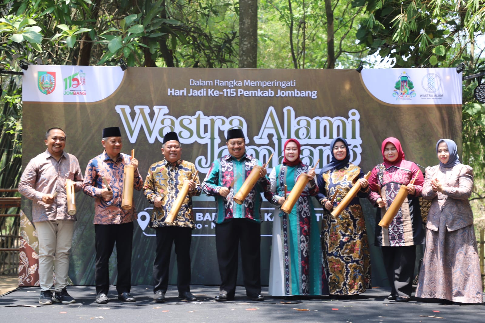 Bupati Jombang H. Warsubi bersama Wakil Bupati Salmanudin dan Ketua Tim Penggerak PKK sekaligus Ketua Dekranasda, Yuliati Nugrahani, meresmikan pembukaan “Wastra Alami Jombang” yang sekaligus menandai dimulainya rangkaian Jombang Fest 2025.