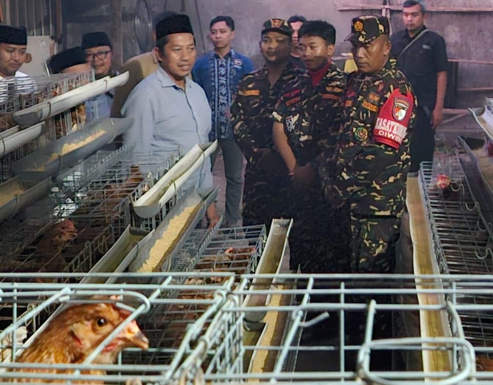 Kunjungan diawali dengan meninjau kandang ayam petelur yang awalnya hanya berisi 20 ekor ayam, dan kini telah berkembang pesat menjadi 1.000 ekor ayam petelur yang dikelola secara bersama oleh kader Ansor setempat.
