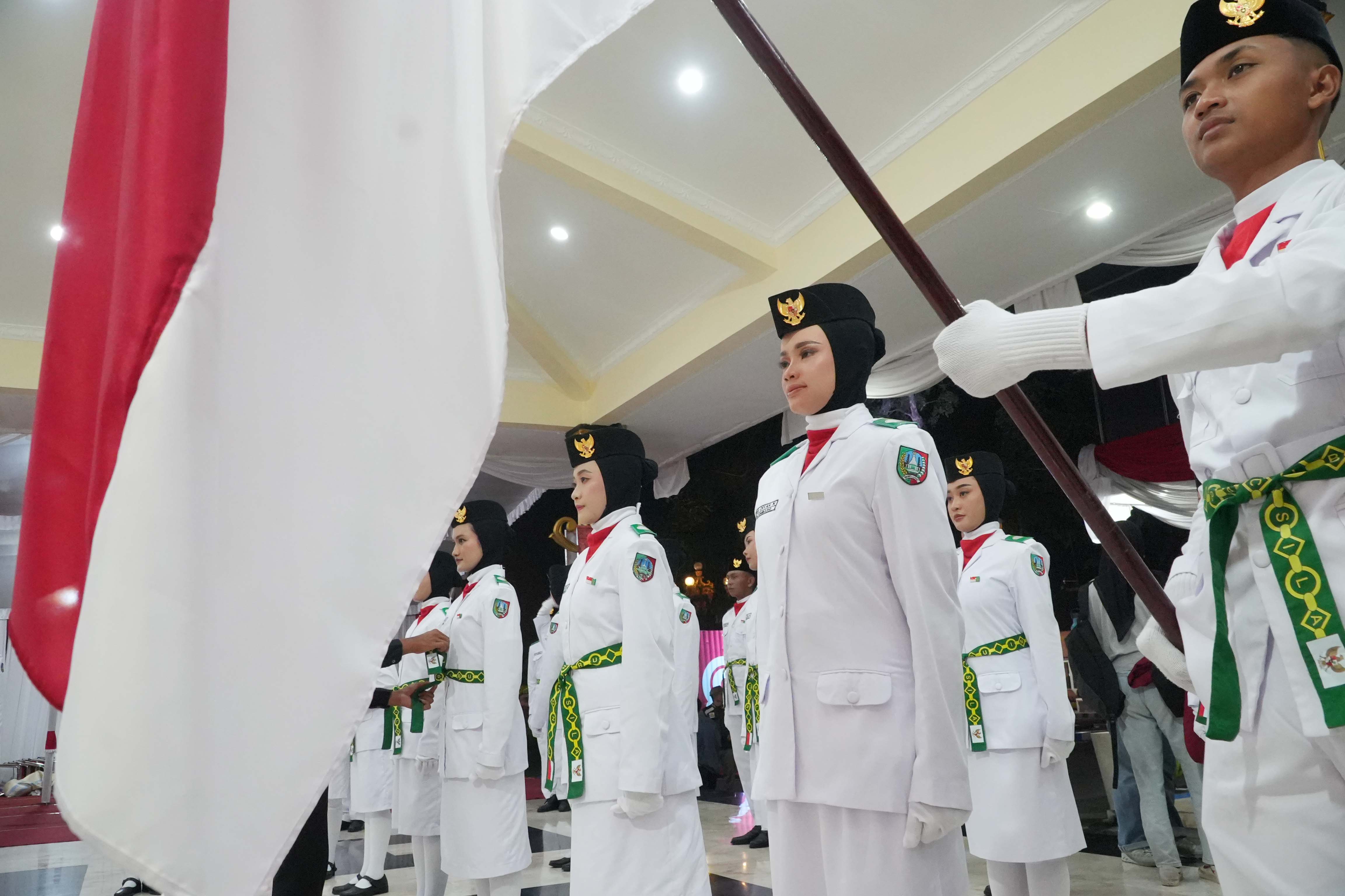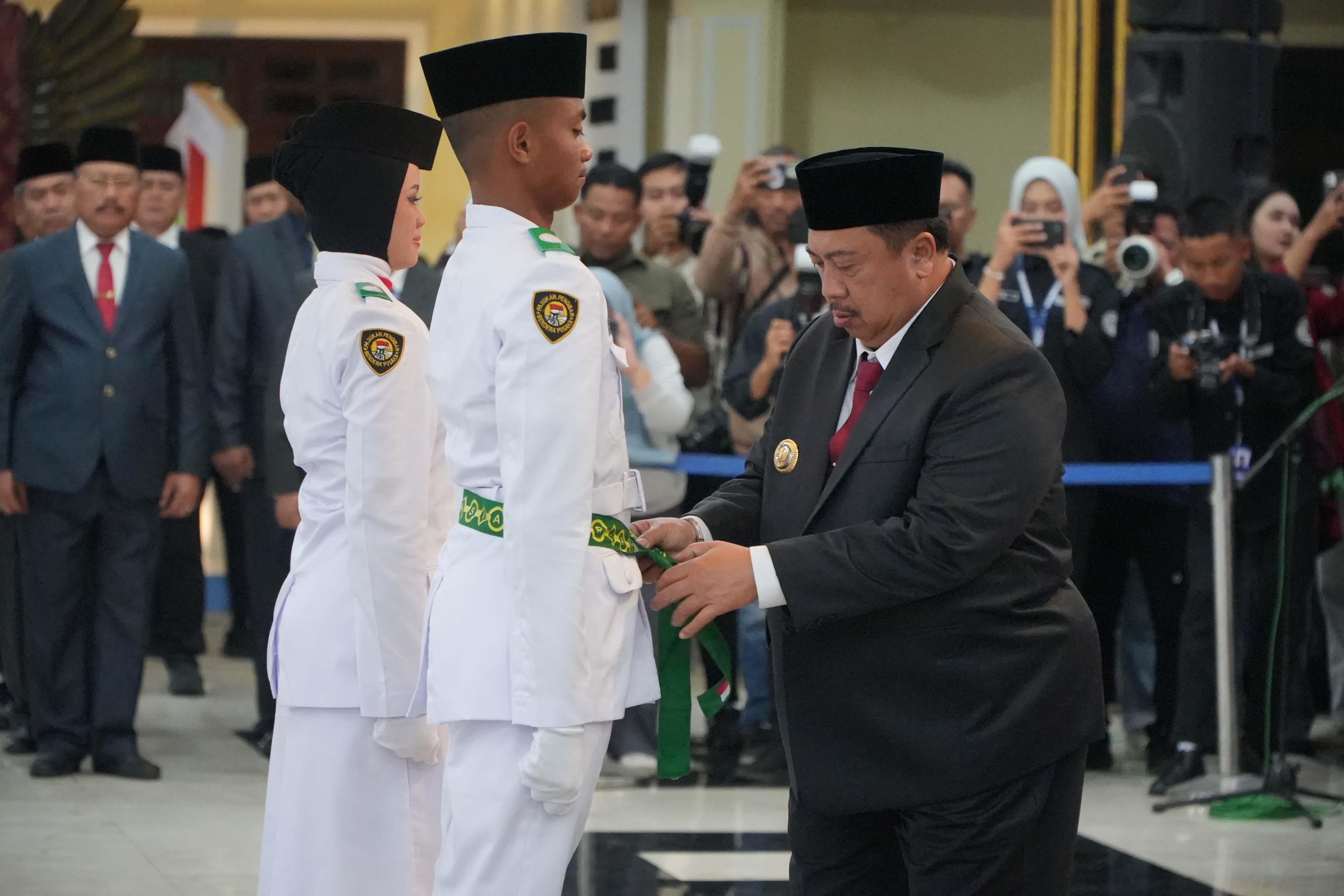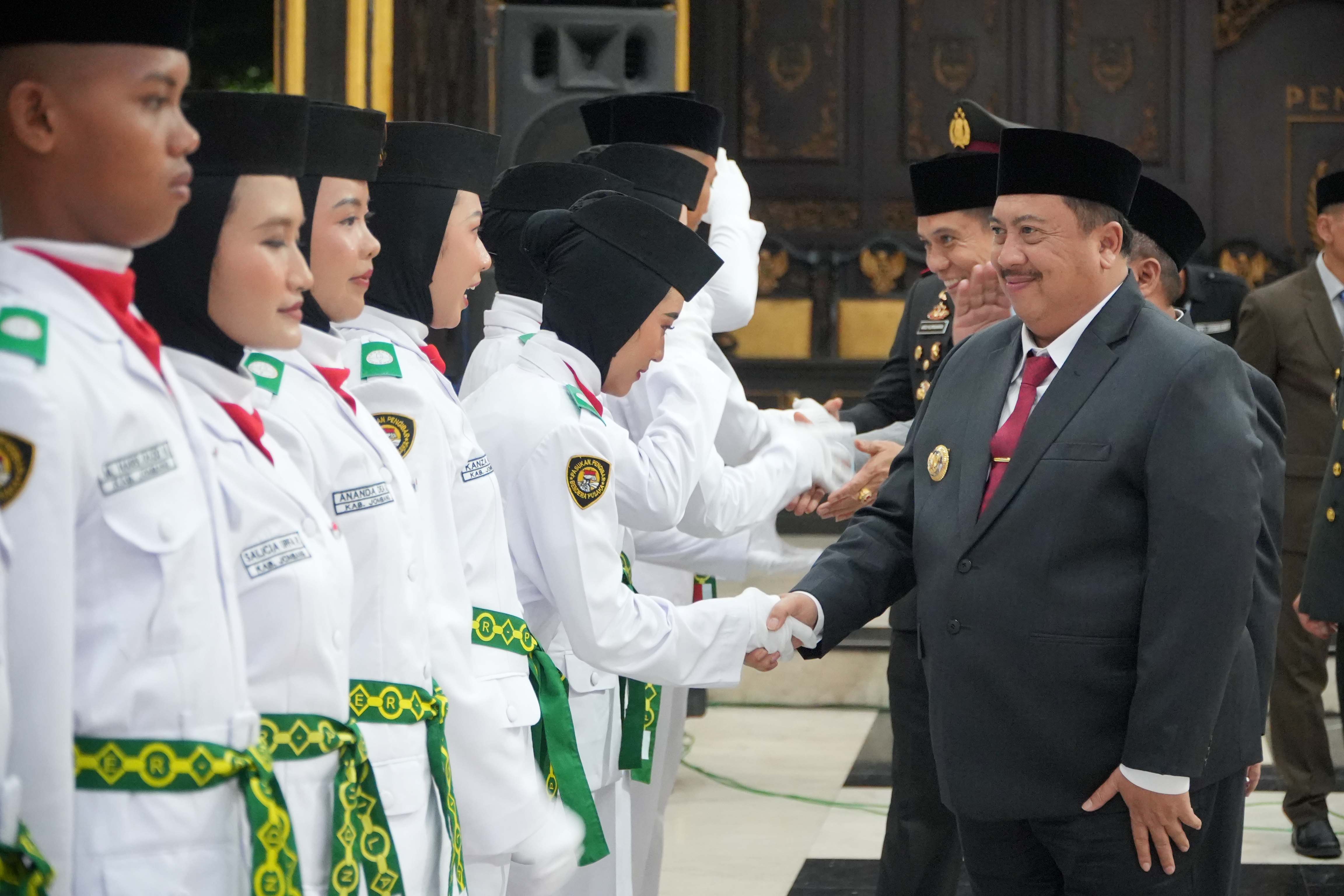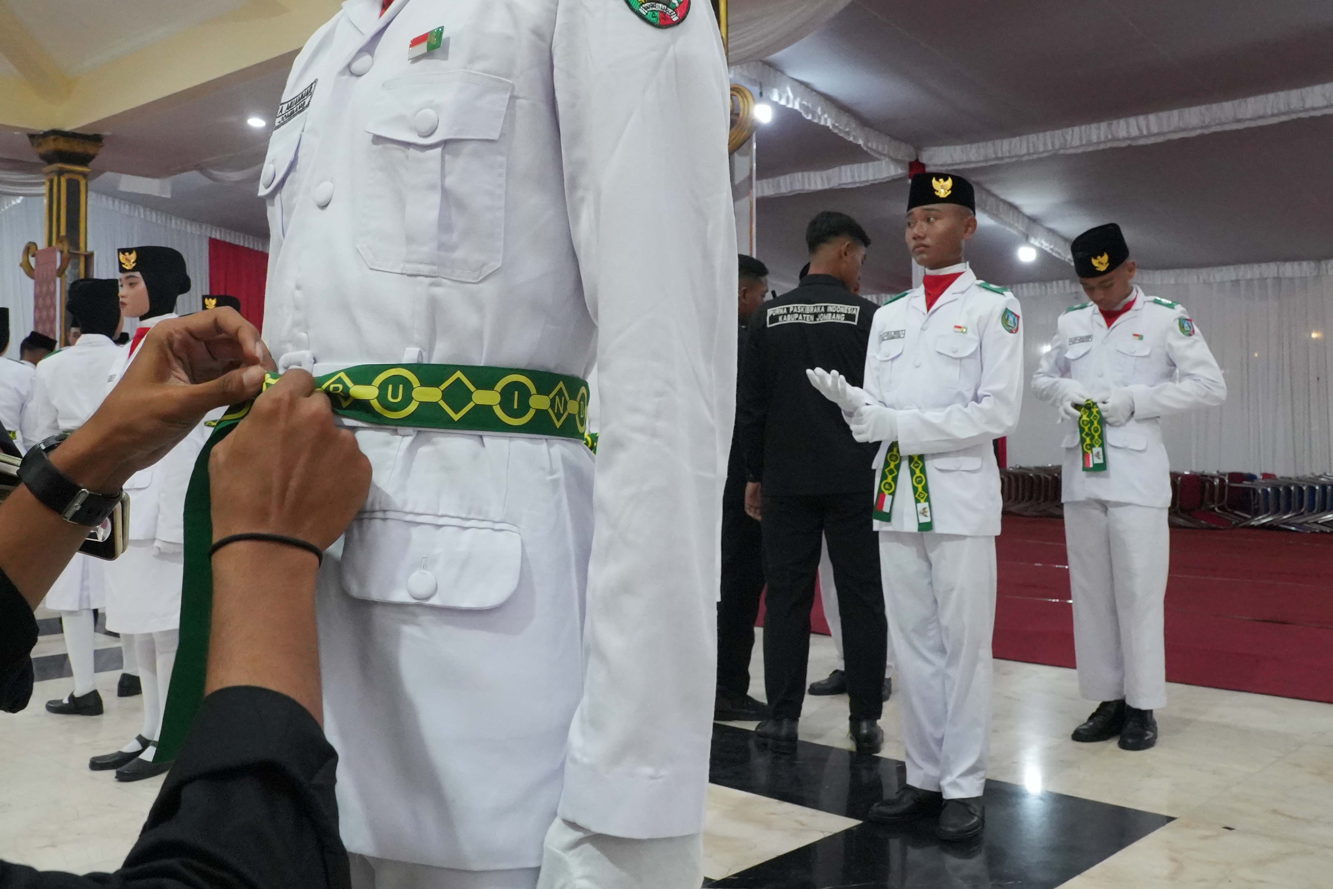 Bupati Jombang Warsubi Mengukuhkan 74 anggota Pasukan Pengibar Bendere (Paskibraka) 2025 di Pendopo Kabupaten Jombang. Seluruh anggota Paskibra itu akan menjalankan tugas di alun-alun Jombang pada 17 Agustus 2025 mendatang. (JOMBANGTV/Luhur Wijaya)Bupati Jombang Warsubi Mengukuhkan 74 anggota Pasukan Pengibar Bendera (Paskibraka) 2025 di Pendopo Kabupaten Jombang. Seluruh anggota Paskibra itu akan menjalankan tugas di alun-alun Jombang pada 17 Agustus 2025 mendatang. (JOMBANGTV/Luhur Wijaya)