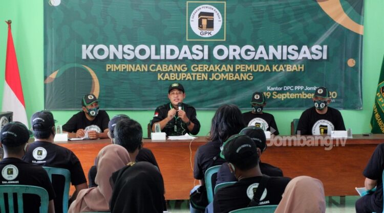 JOMBANG.TV – Ditengah Pandemi Covid-19, bukan penghalang bagi Gerakan Pemuda Ka’bah (GPK) Jombang, untuk merekatkan solidaritas dan perjuangan demi kebaikan serta kesejahteraan masyarakat. Hal ini dibuktikan dengan digelarnya Konsolidasi Organisasi GPK Jombang yang dipimpin langsung oleh H. Mujtahidur Ridho (Gus Edo) sebagai Ketua GPK Jombang, yang dihadiri Bupati Jombang, Hj. Mundjidah Wahab selaku Ketua DPC PPP Kabupaten Jombang (19/09/20) bertempat di Kantor DPC PPP Jombang.