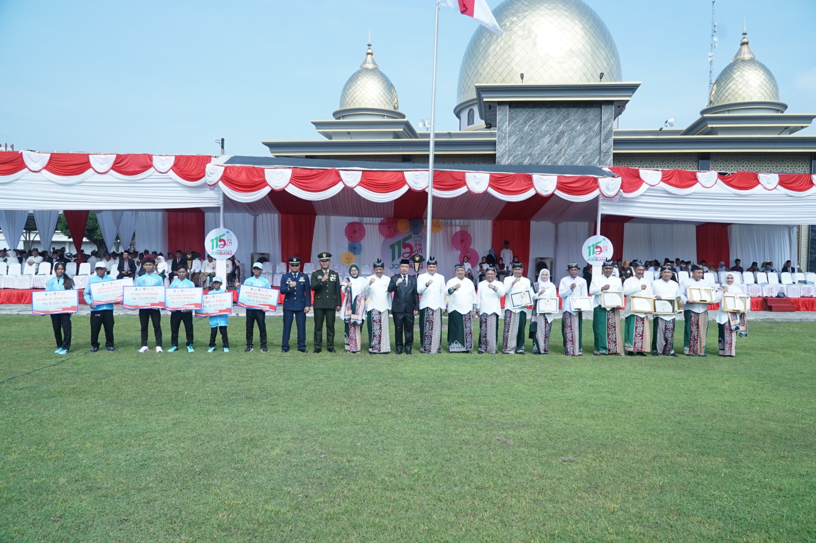 JOMBANG.TV — Di akhir rangkaian Upacara Peringatan Hari Jadi ke-115 Pemerintah Kabupaten Jombang, Bupati H. Warsubi, didampingi Forkopimda, menyerahkan secara simbolis penghargaan kepada kecamatan-kecamatan yang menunjukkan kinerja terbaiknya.