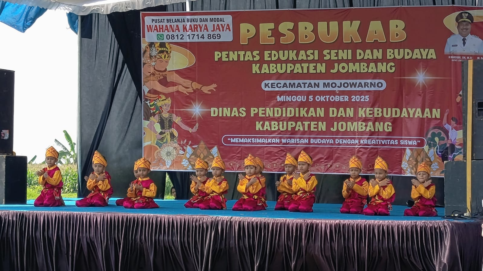 JOMBANG.TV – Pentas Edukasi Seni dan Budaya Kabupaten Jombang (Pesbukab) berlangsung semarak di Lapangan Desa Gondek, Kecamatan Mojowarno, Kabupaten Jombang, Minggu (5/10/2025).