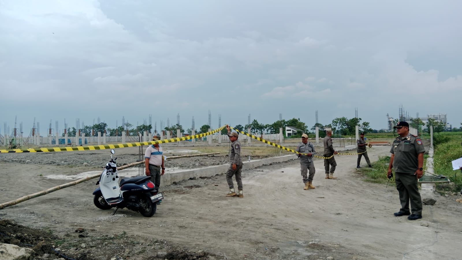 Bahkan, petugas dari Satpol PP Jombang memasang ‘Satpol PP Line’ dan spanduk penghentian kegiatan di lokasi tersebut.