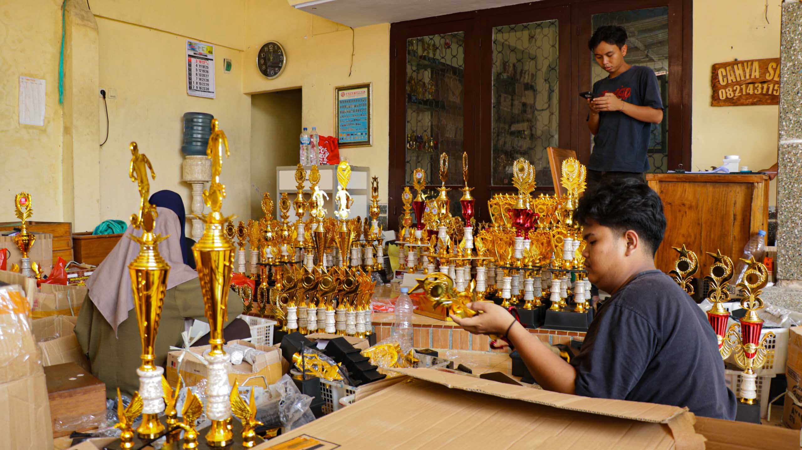 “Yang membuat beda usaha ini dengan yang lain yaitu satu komitmen, dua tanggung jawab, tiga ketepatan waktu. Karena memang piala kan menyangkut event jadi ga mungkin telat, sehingga itu yang harus kita jaga. Apalagi pelanggan kan sudah percaya dengan kita. Bahkan, pemesanan online pun kita harus memastikan pialanya akan dipakai kapan, dan memilihkan ekspedisi yang sesuai dan memberikan informasi estimasi sampainya itu kapan,” ujar Rio, Manajer Operasional usaha produksi piala Cahya Setya Trophy.