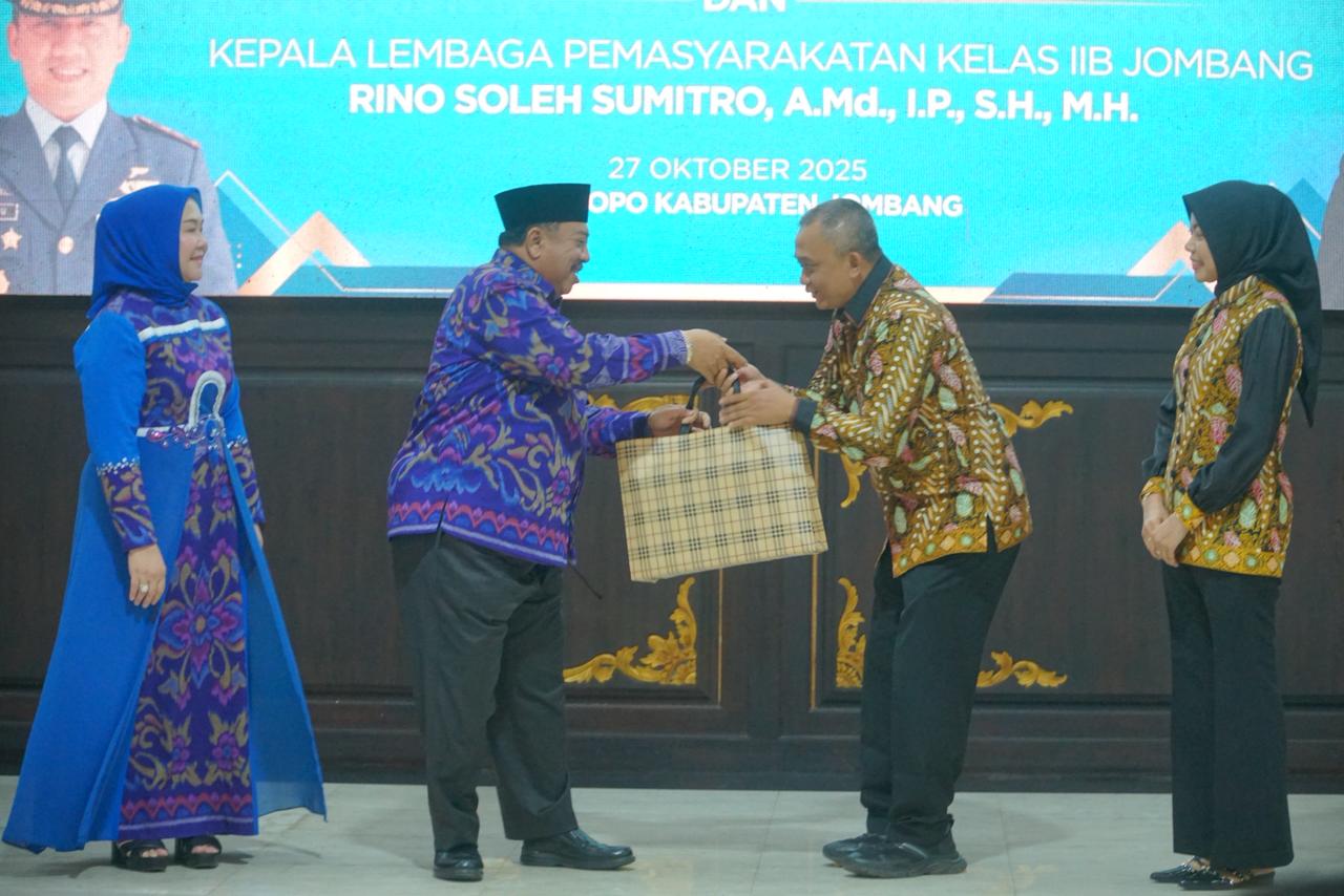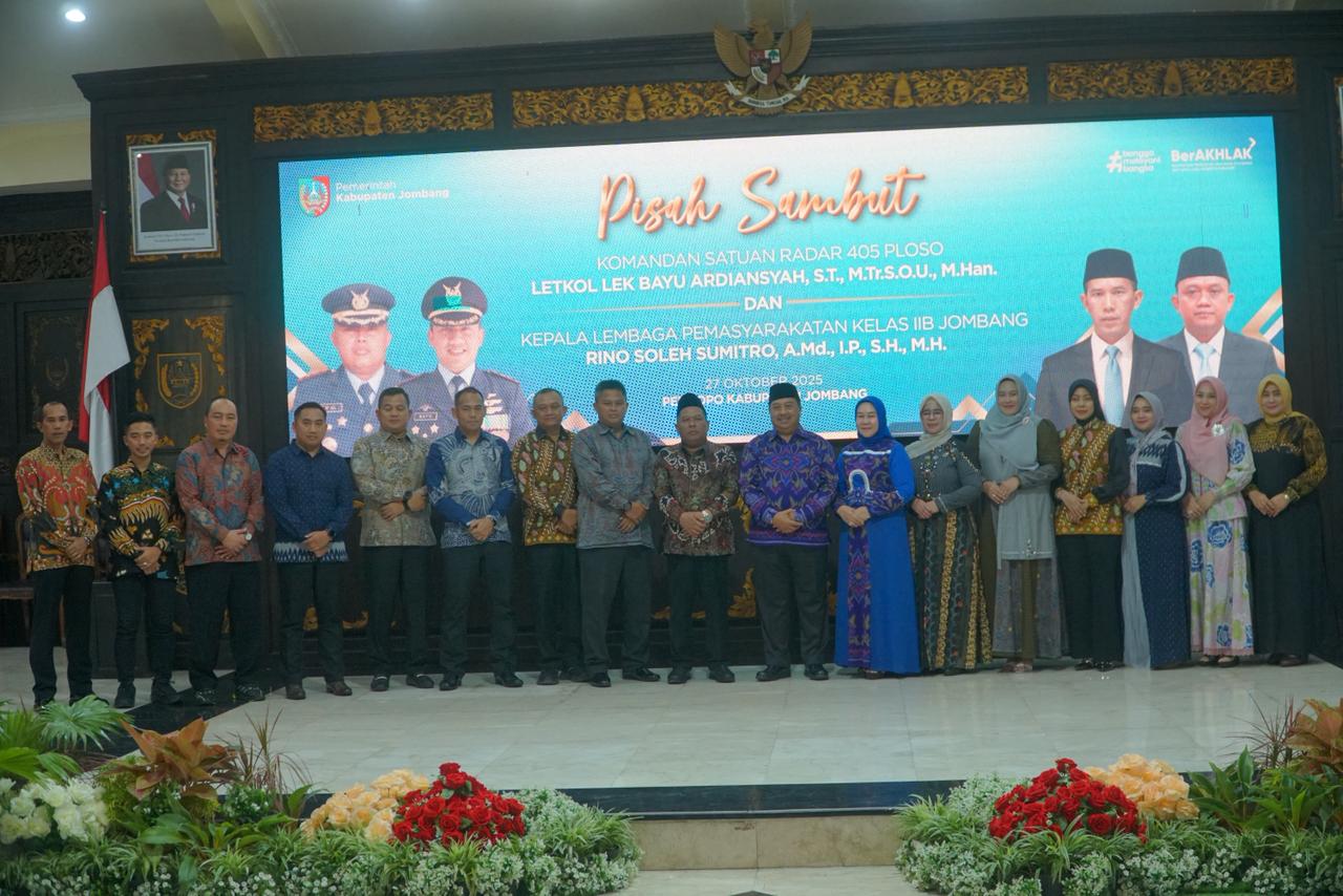 JOMBANG.TV – Pemerintah Kabupaten Jombang menggelar acara pisah sambut Komandan Satuan Radar 405 Ploso dan Kepala Lembaga Pemasyarakatan (Lapas) Kelas IIB Jombang di Pendopo Kabupaten Jombang, Senin (27/10/2025).