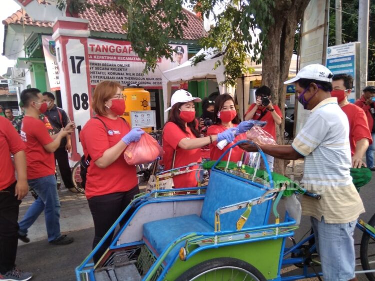 Tak hanya sembako, PSMTI juga memberikan maskermasker terhadap abang becak, anak yatim piatu hingga penyandang disabilitas.